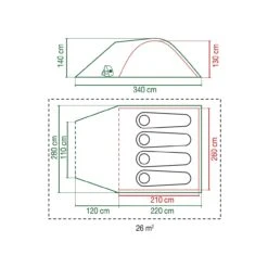 | Maß Innenzelt (Länge/Breite/Höhe): | 210 x 260 x 130 cm |