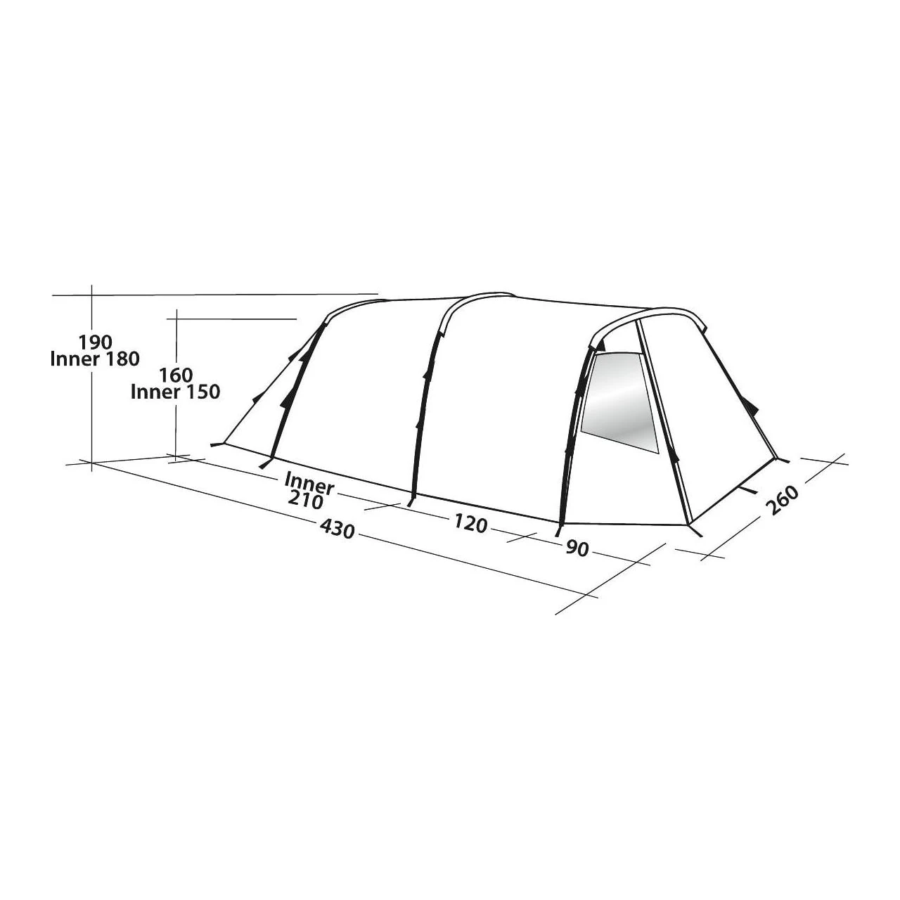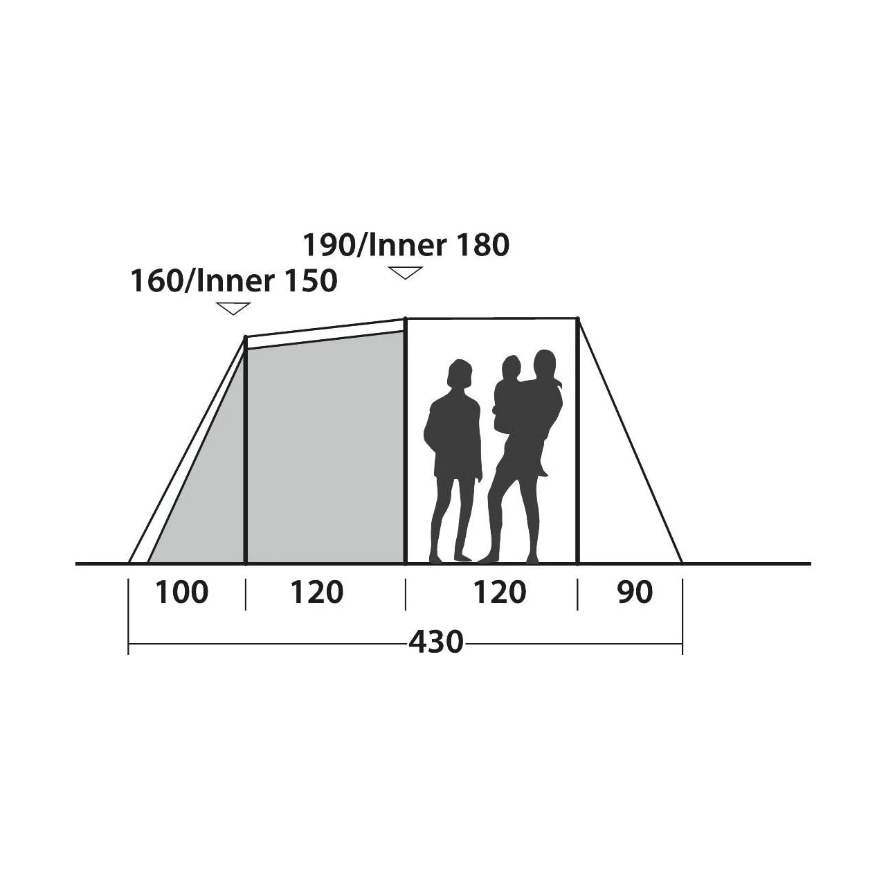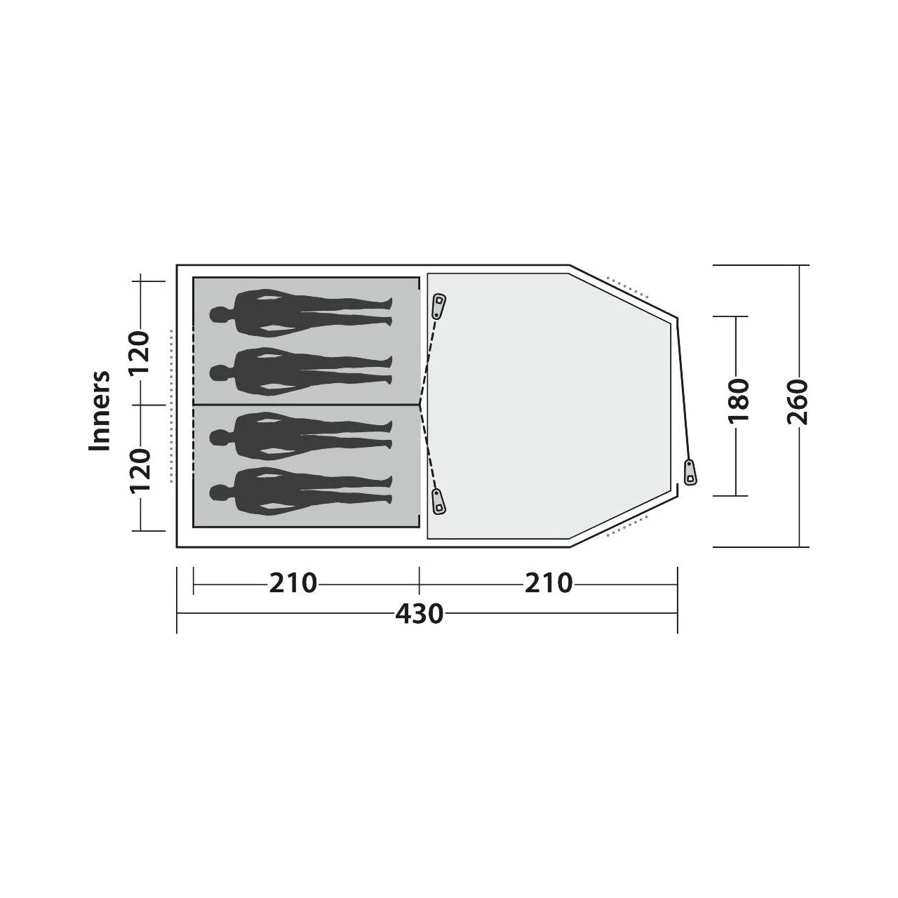 | Maß Innenzelt (Länge/Breite/Höhe): | 210 x 240 x 150/160 cm |
