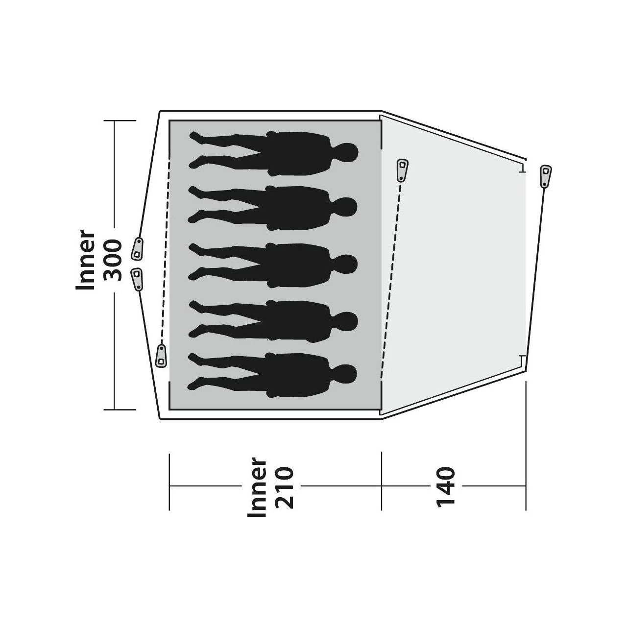 | Maß Innenzelt (Länge/Breite/Höhe): | 210 x 300 x 175 cm |