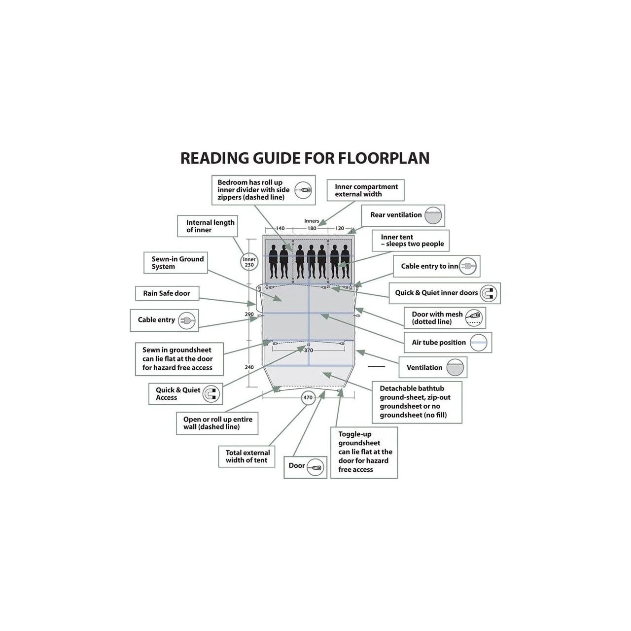 - Abgedunkeltes Innenzelt erhöht den Schlafkomfort